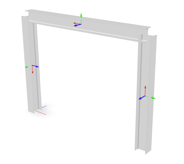 This example is developed in detail on the examples site. In order to cover a wide range of cases, the strong axis of the first column, element 1, is oriented so as to resist bending outside the plane of the portal, but the strong axis of the second column, element 3, will resist bending inside the portal plane.